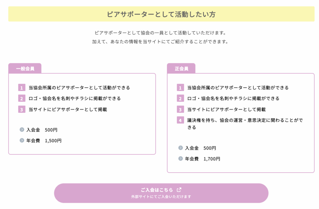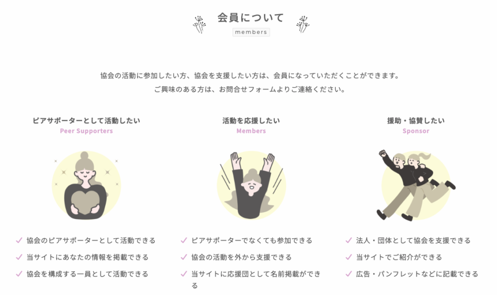 不妊症不育症ピアサポーター協会様が提供されている会員の種別は、もともとは6種類ありました。お話を丁寧に伺うと、それぞれの会員の特典も異なっているのですが、旧サイトではそれぞれの違いが分かりにくくなってしまっていました。