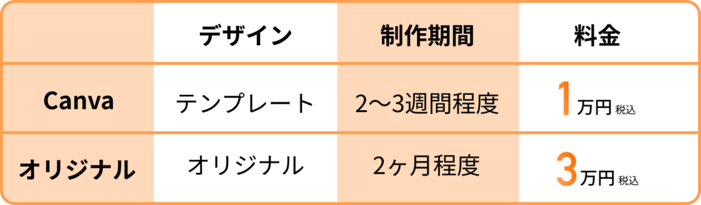 下記プラン以外にもお好みに合わせてお見積り可能です。