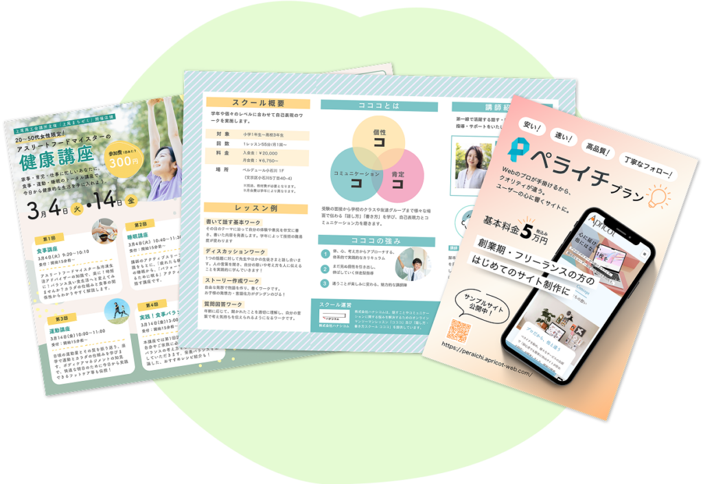 ご自身でチラシや名刺を作る時に、ターゲティングを意識したことはありますか?あなたの事業のターゲットと、印刷物を渡す相手は実は微妙にターゲットが違ったりします。「誰に、どんなタイミングで渡して、どう思ってほしいのか」まずは一緒に考えて、デザインで具現化していきます。考え抜かれた最強の武器であなたの事業をもっと大きく。
